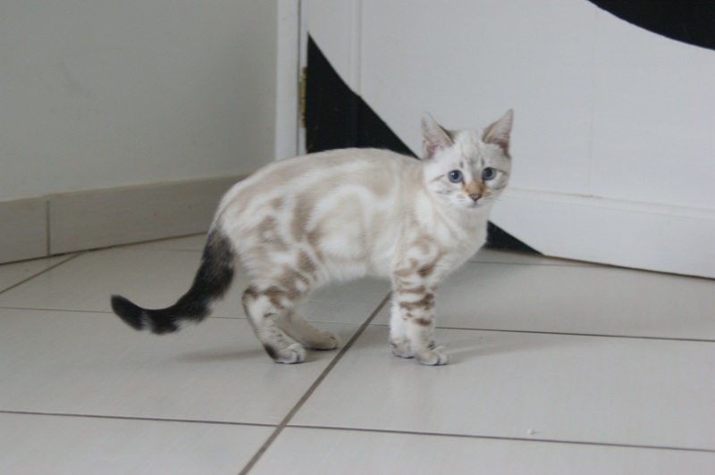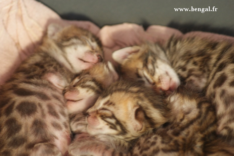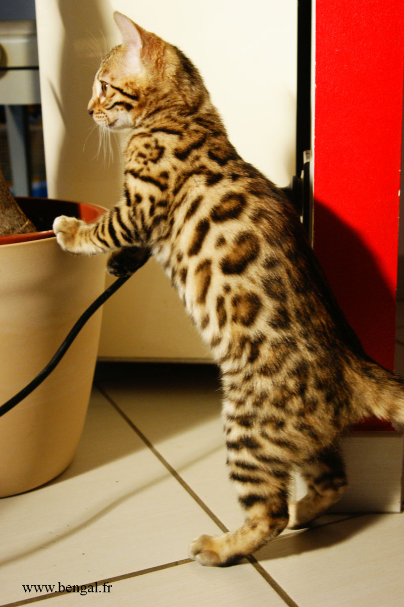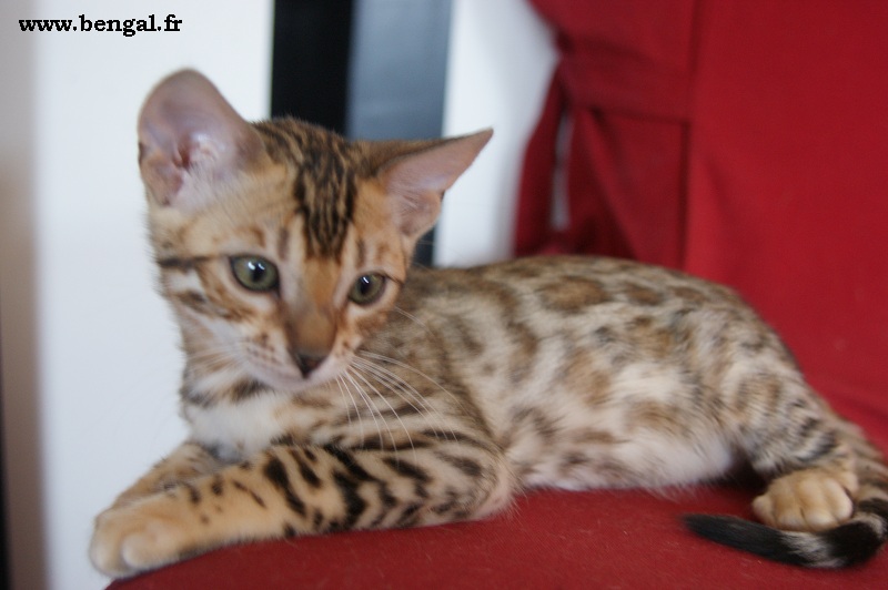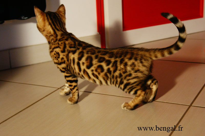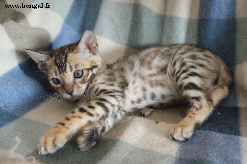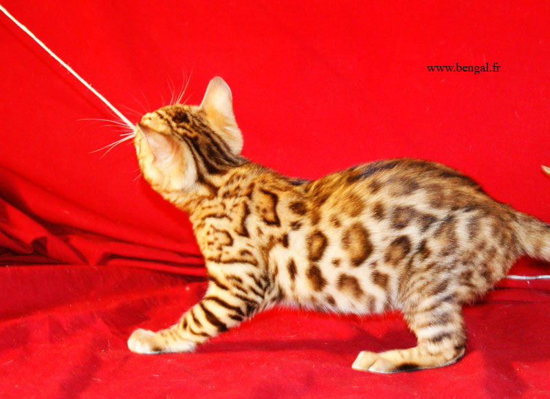 Video d'un chaton né chez nous en 2011 : Vendu _______________________________________________________________________________________________________________________________________________________________ InformationsLa Chatterie Kawalik (du mont des ânes) est un élevage professionnel et familial. Nous favorisons une socialisation intraspécifique (nous avons d'autres chats non bengals) et interspécifique (à l'homme, bien sûr, maus aussi à d'autres animaux domestiques quand cela nous est possible). Plus globalement, nous tentons d'offrir à nos chatons une grande variété de stimulations. Cette démarche gourmande en temps et en énergie nous permet de proposer aux amoureux du bengal des chats équilibrés, dynamiques et sociables. Nos chats ne vivent pas sous bulle, et nous croyons que cela vaut mieux pour eux...et pour vous ! Dans ce sens, nous ne rendons nos chatons disponibles qu'à l'âge de 12 semaines. Tous nos chatons sont vendus vaccinés (primo+ rappel), , tatoués électroniquement (puce hypodermique), munis de leur pédigrée LOOF et d'un kit chaton. Nous fournissons également attestation de vente et facture. Ils sont tous issus de parents testés négatifs aux FIV et FelV. Si vous souhaitez acquérir un de nos chatons, il vous faudra verser un acompte pour la réservation. Le prix de l'acompte varie en fonction de la qualité du chaton (compagnie, reproducteur, expo..), de 300 à 500 €. Les acomptes sont non remboursables mais peuvent être transférés sur un autre chaton d'une autres portée. Nous avons des possibilités de livraison en France et à l'international Possibilités également de paiements en 3 fois. Pour tous renseignements , réservation ou si vous souhaitez être mis sur notre liste d'attente pour nos prochaines portées (permets d'avoir les premiers choix sur les portées), contactez nous !!