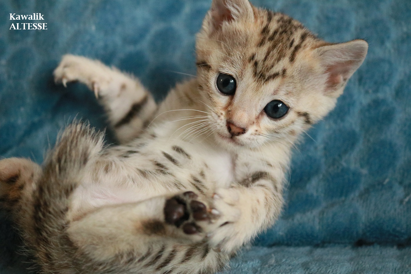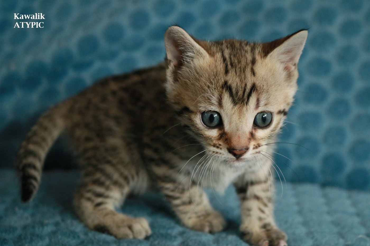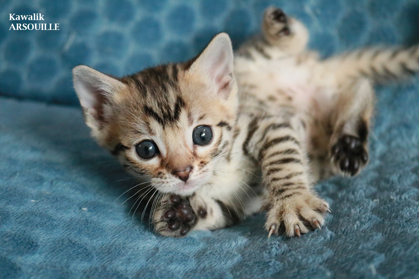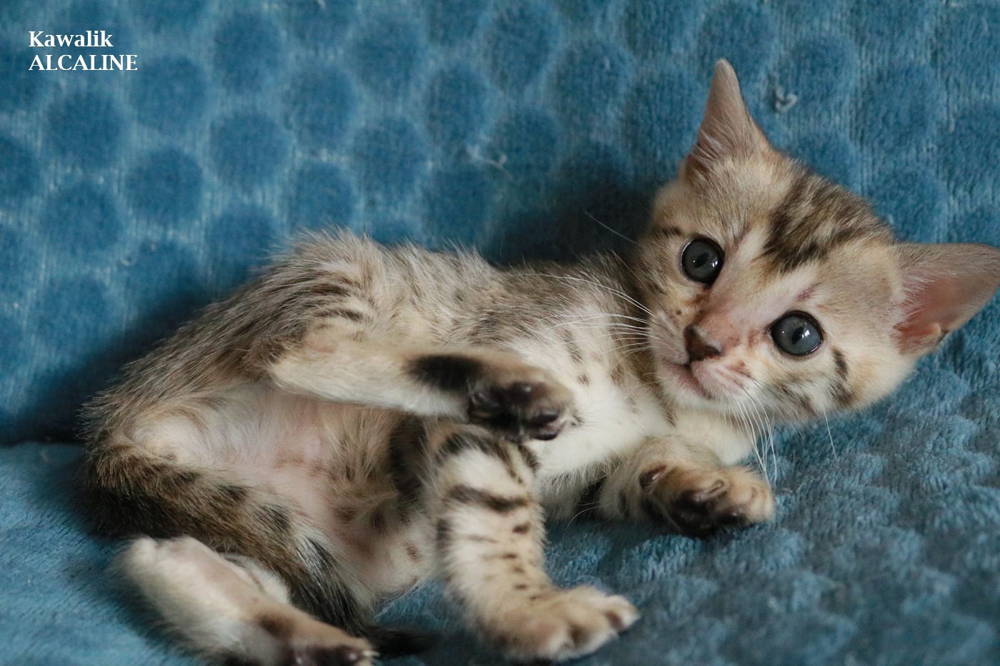 La Chatterie Kawalik est un élevage professionnel et familial. Nous favorisons une socialisation intraspécifique (nous avons d'autres chats non bengal) et interspécifique (à l'homme, bien sûr, mais aussi au chien). Plus globalement, nous tentons d'offrir à nos chatons une grande variété de stimulations. Cette démarche gourmande en temps et en énergie nous permet de proposer aux amoureux du bengal des chats équilibrés, dynamiques et sociables. Nos chats ne vivent pas sous bulle, et nous croyons que cela vaut mieux pour eux...et pour vous !