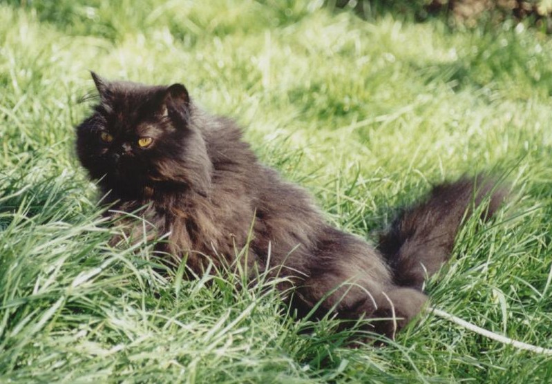 Belzébuth était un persan unicolore noir, né le 02/03/2000. Le résultat de la toute première portée de race que j'ai fait naître. Il m'a accompagné de longues années, m'a suivi dans ma vie estudiantine, à Dijon, puis à Paris....pour finalement revenir aux sources plus tard. Il a été le compagnon d'un bon nombre de minettes bengal et de chatons. Il s'est toujours montré affecteux. Il nous a quitté à l'automne 2017, du haut de ses 17 ans, dans mes bras. Il restera à mon souvenir à tout jamais.